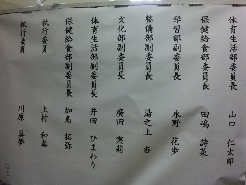 新生徒会役員紹介 【更新日】2023年01月27日 3学期から新生徒会が始動しています。今日は役員の紹介と専門部の活動の様子を紹介します。文化部は受験生を応援する掲示物の準備を行っていました。また、美化部は校内美化に取り組んでいました。現在、私立高校の受験が行われています。来週は公立高校の前期試験が行われます。がんばれ!3年生!