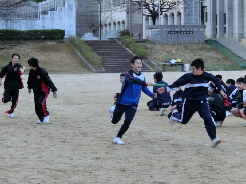 第二体育大会(生徒会レク) 【更新日】2021年12月24日 昨日三川中伝統の第二体育大会(生徒会レク)が開催されました。校訓「創造」性が発揮され、すばらしい行事になりました。現生徒会執行部がリーダーシップを発揮して、すべて生徒たちだけの手で作り上げ、主体的な取組が見られました。本校のめざす生徒の主体性を大切にした教育を具現化したすばらしい取組でした。現執行部はこの行事を最後に新執行部と交代します。1年間お疲れ様でした。