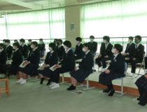 本日、2年生の進路学習で玉成高校の先生方をお迎えして、玉成高校の学科等についてお話をしていただきました。現在3年生の受験が順調に進んでいますが、1年後は2年生の番です。みんな真剣な表情で話を聞いていました。