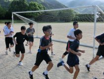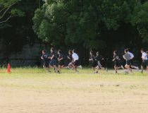今朝も暑い中駅伝メンバーはがんばっていました。今日の練習はみんなで励まし合いながら、とてもすばらしいムードで練習していました。