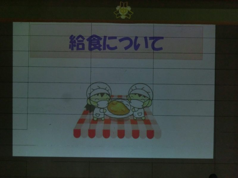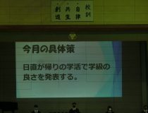 新生徒会になって初めての生徒集会が開催されました。新役員は緊張気味で朝早くから準備をしていました。今日は給食部の「給食の話」があり充実した内容でした。
