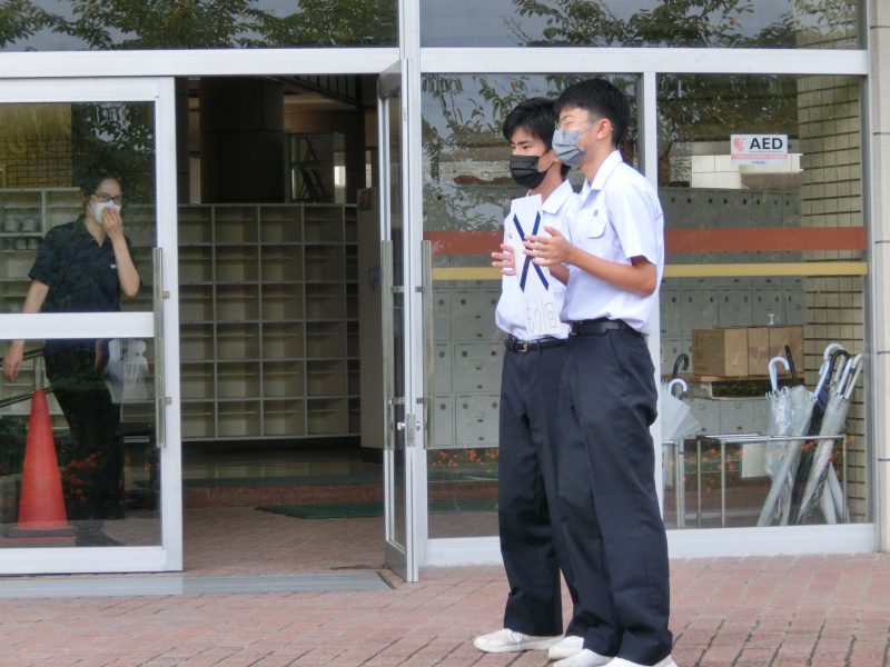 本日は保護者の方にも参加していただき、あいさつ運動が行われました。
