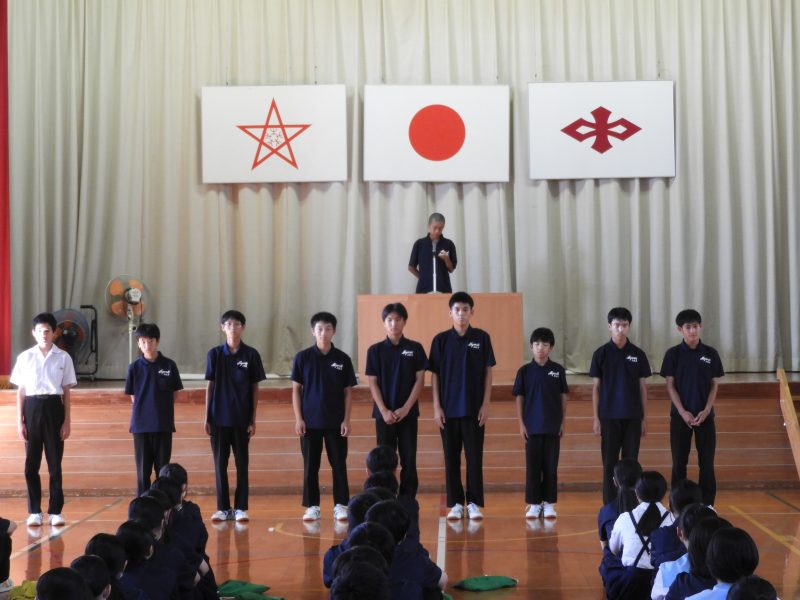 令和7年度2学期【学校生活】 10/1 市中総体駅伝大会 選手激励式 【更新日】2025年10月01日 10/2(木)に開催される長崎市中総体駅伝大会の選手激励式を行いました。 がんばれ長中駅伝チーム! 負けるな長中駅伝チーム!!