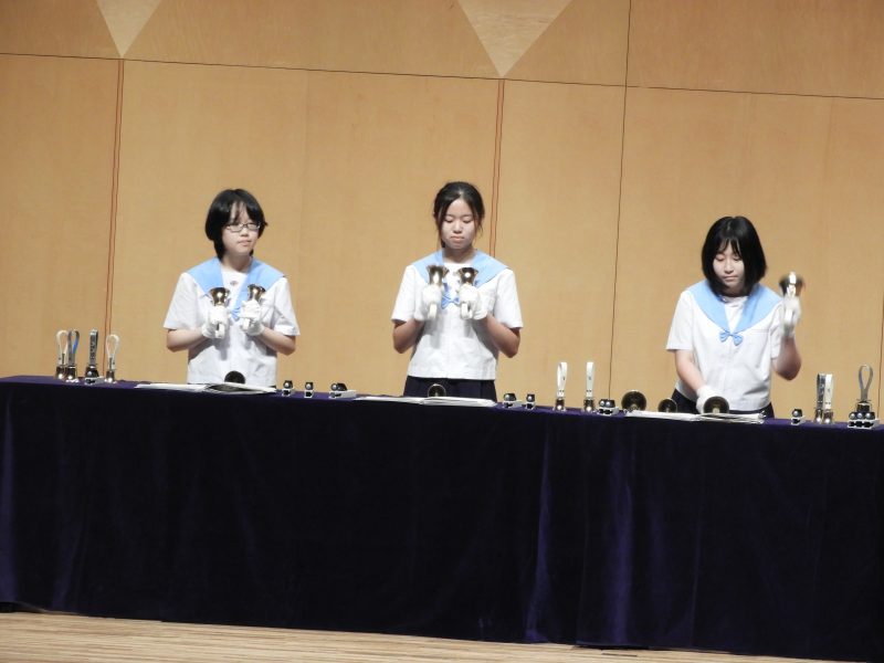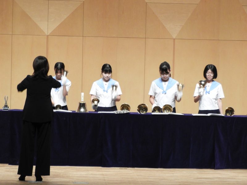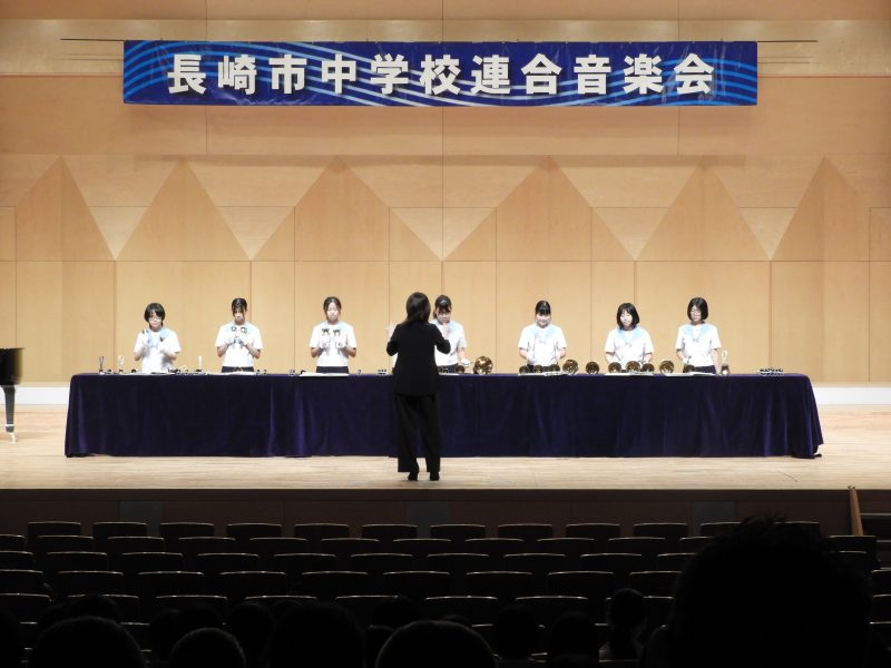 令和7年度2学期【学校生活】 10/16(木) 音楽部が長崎市中学校連合音楽会へ 【更新日】2025年10月16日 毎年ブリックホールで開かれる長崎市中学校連合音楽会。そのトップバッターを本校音楽部が務めました。 これまでも様々なステージに立ってきましたが、ブリックホールという大舞台、しかもトップバッター。そのプレッシャーを感じさせない、余裕すら感じる演奏を披露しました。ホールの隅々まで響き渡る美しいハンドベルの音。10/19(日)おおとり祭での演奏も大変楽しみです。