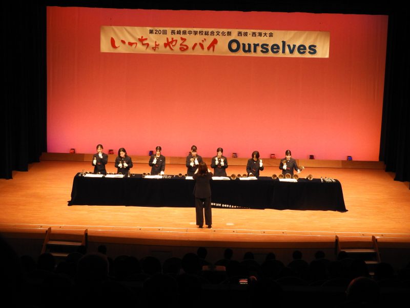 令和7年度2学期【学校生活】 11/20県中総文祭そして11/21出島クリスマスツリー点灯式 ハンドベル部引っ張りだこ!! 【更新日】2025年11月25日 本校ハンドベル部が校外のイベントに引っ張りだこです!! 11/20(木)は、長崎市代表として、長崎県中学校総合文化祭に出演しました。参観された多くの方々から「素敵な音色ですね」というお褒めの言葉をいただきました。 11/21(金)は、出島のクリスマスツリーの点灯セレモニーに招待されました。海外からの観光客も見つめる中、美しい鐘の音がセレモニーの雰囲気をより厳かにしました。