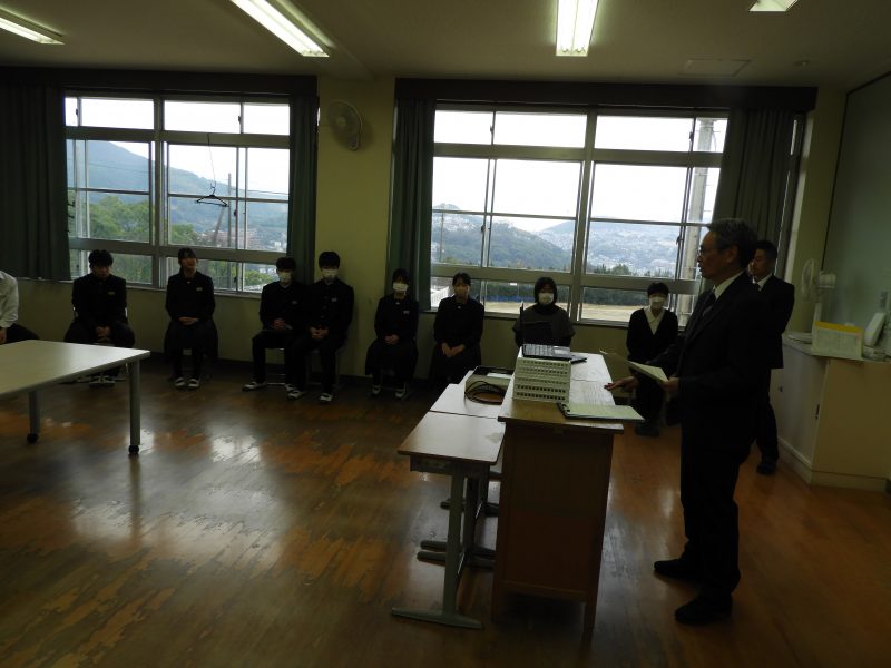【】 3学期始業式を行いました 【更新日】2025年01月08日 本日(1月8日)、3学期始業式を行いました。感染症の感染拡大防止を考慮して、教室とを結んだオンラインでの開催としました。 各学年の代表からは新年の抱負として、一つずつ学年が上がるうえで気をつけたいことが述べられました。 その後、3学期学級委員の任命と生徒会役員の任命を行いました。新しい年にふさわしいやる気に満ちた生徒の姿はたいへん頼もしく感じました。