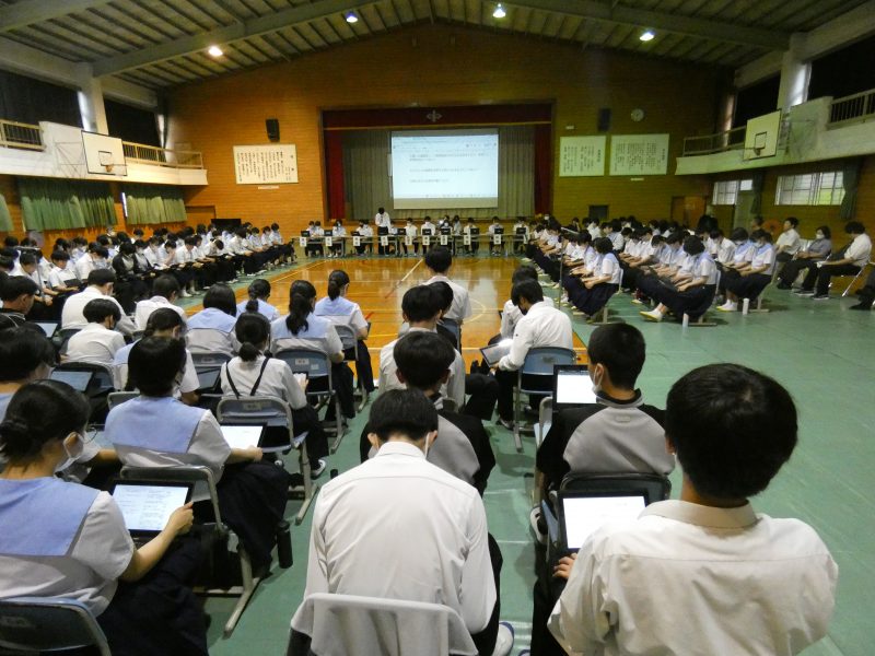 【】 令和6年度 生徒総会 【更新日】2024年06月28日 本日(6月28日)、生徒総会が開催されました。 学校改善案では受験に行くことができる髪型とはどんな髪型かということや、人に迷惑をかけなければ自由でいいのではないかといった意見が出され、活発な意見交換が行われました。 また、メディアと上手に付き合うための長中ルール(長中メディア宣言)についても協議され、時間に関する約束事としてメディアの使用時間は6時から22時まで、視聴(使用)時間は平日2時間半、休日3時間以内となりました。