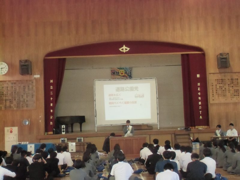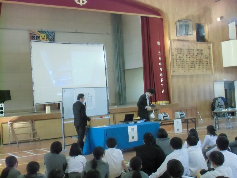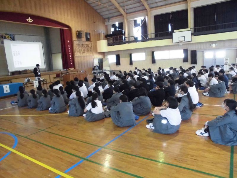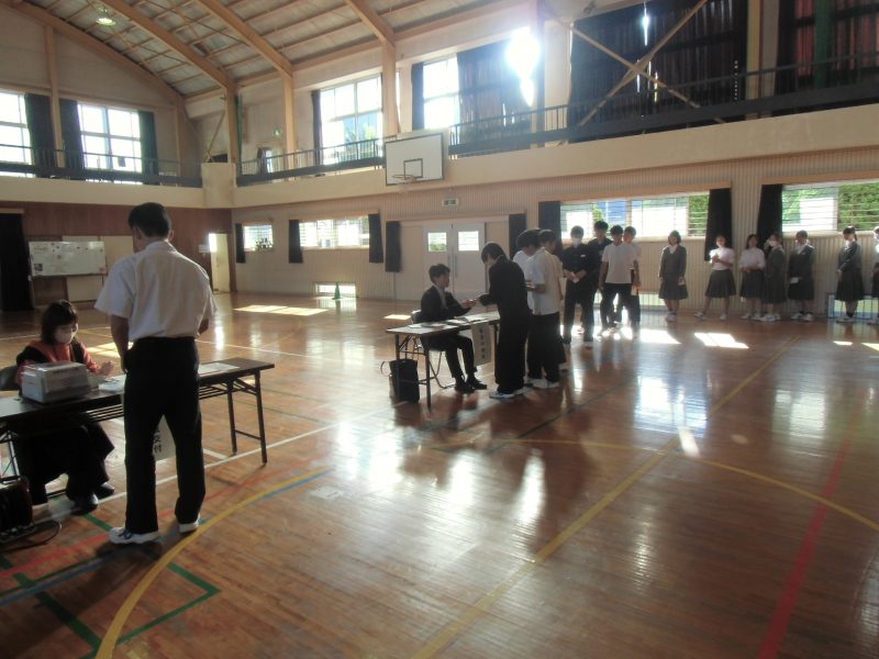 本校体育館において、選挙管理員会の方をお招きし、3年生を対象に公職選挙の模擬体験を行いました。