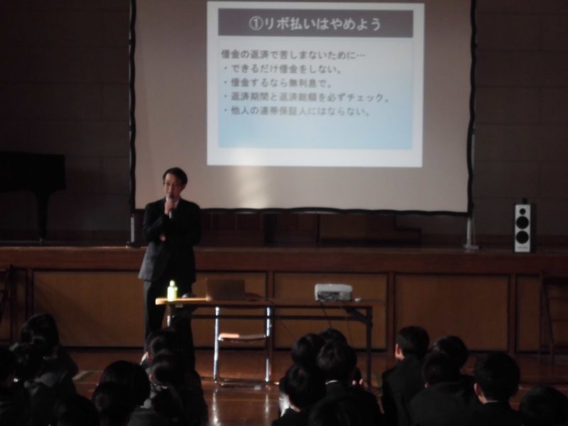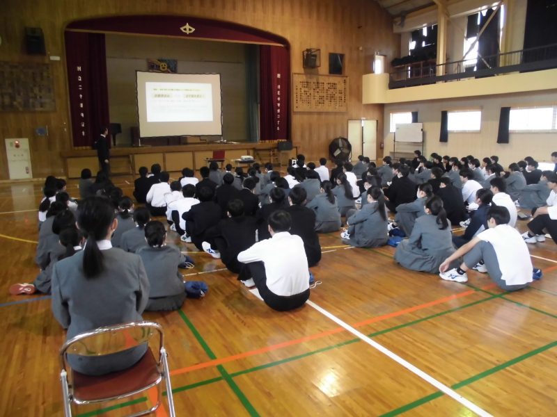学校生活【学校生活】 11月20日(木)3年法教育 【更新日】2025年11月21日 11月20日(木)5・6校時、本校体育館において、弁護士の先生をお招きし、3年生を対象に法教育を行いました。社会人になる一歩手前の生徒たち、今後の複雑な社会の中でしっかりと人生を歩み心積りができたと思います。