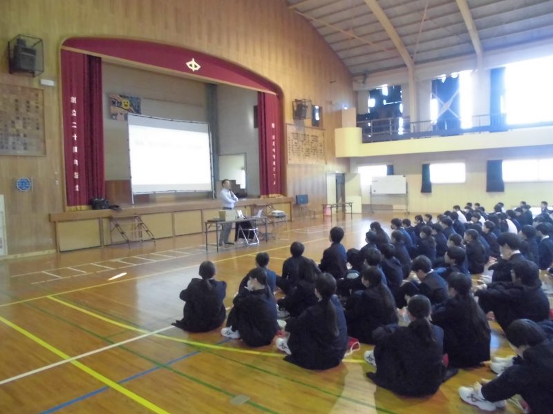 学校生活【学校生活】 12月9日(火)学校保健委員会 【更新日】2025年12月09日 本校体育館において、”THANKS”代表 杉野伸治先生をお招きし、 PTA主催の学校保健委員会と学校の活動として、生徒・保護者に講演会を開きました。 『生活習慣トレーニング』というテーマで、睡眠障害・ゲーム依存症・栄養障害と さまざまな実例を挙げながら講演していただきました。さらに、後半は、保護者だけ を対象に子どもへの声掛けなど養育態度等についてお話しいただきました。