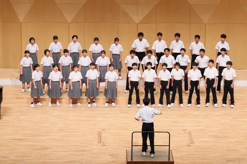 学校生活【学校生活】 3年生 連合音楽会(長崎ブリックホール) 【更新日】2025年10月22日 10月16日(木)、17日(金)に長崎市内中学校が集まり、各校が音楽を披露する連合音楽会が実施されました。 今年度で75回目を迎える伝統ある音楽会で、滑石中学校3年生も16日(木)に参加してきました。 今年度は、1曲目に本校で実施した合唱コンクールで金賞を獲得した3年1組が『黒い瞳』を、2曲目に3年生全体で「空駆ける天馬」を披露しました。 ブリックホールという大きな舞台でしたが、それに臆することなく、鳥肌が立つほど、圧巻の歌声を披露しました。