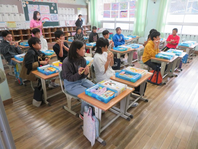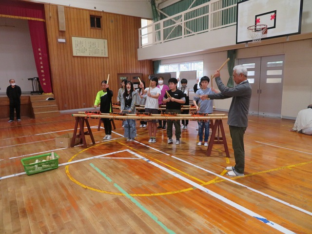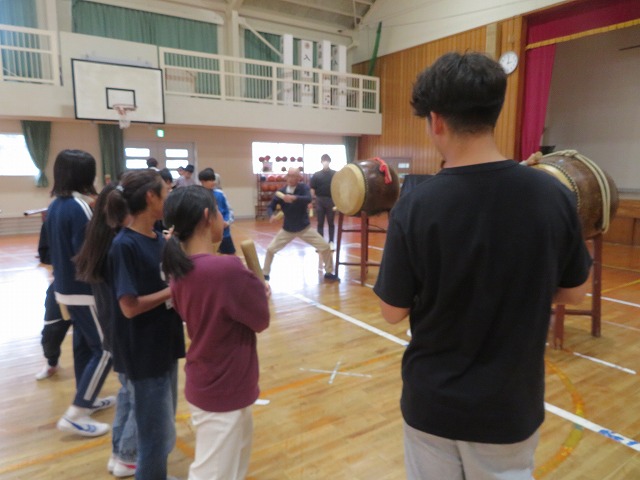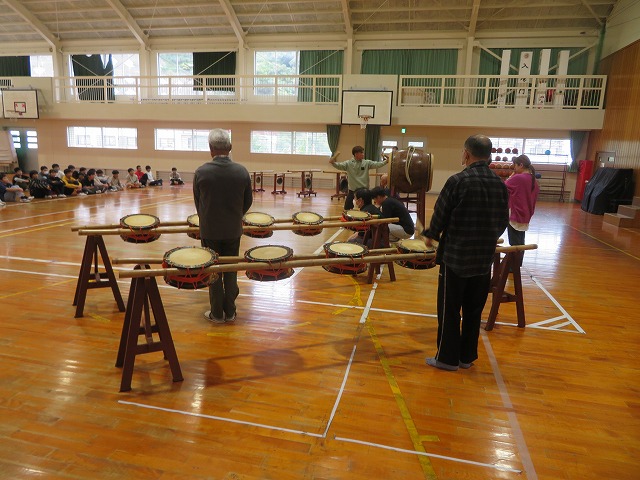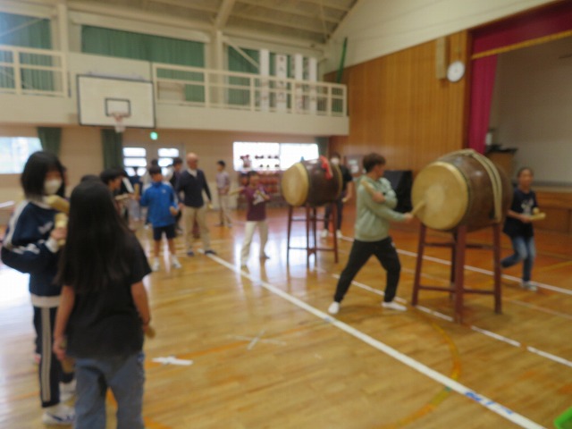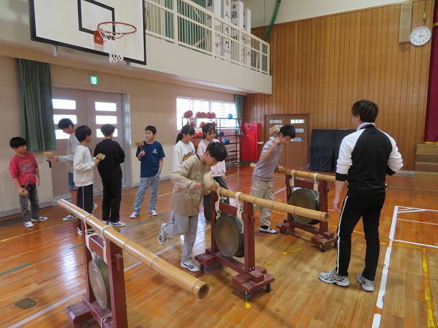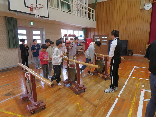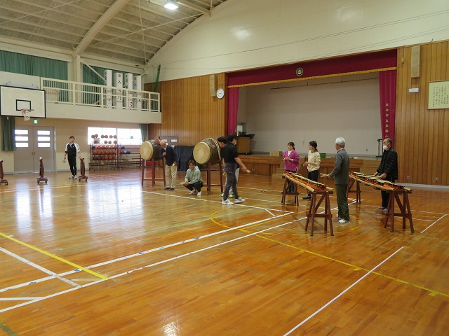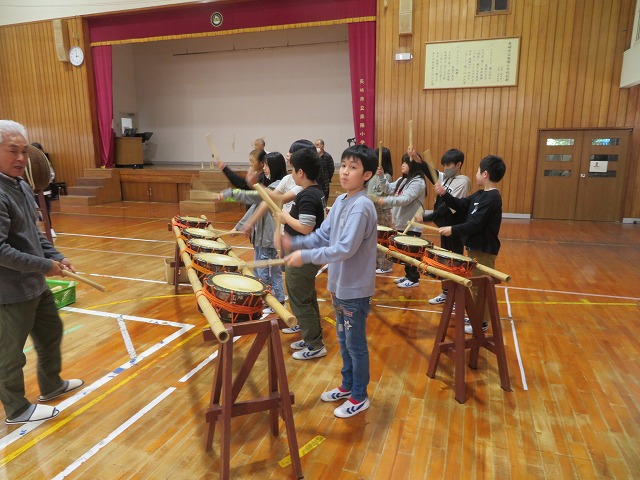 【】 ふるさとまつりへ 6年生浮立の継承 【更新日】2025年11月07日 毎年6年生はふるさとまつりで「浮立」の発表を行います。今年は「竿浦・江川・江川南 浮立保存の会」の方たちにお世話になり、伝統芸能の継承を行います。初日の様子を紹介します。