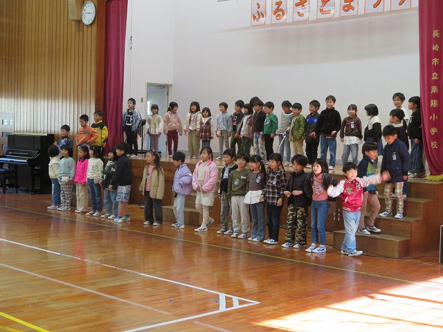 行事【学校生活】 ふるさとまつり11月22日 【更新日】2025年11月22日 「南陽小ふるさとまつり」が11月22日(土)に体育館で行われました。 天気は「南の太陽の子」にふさわしく、太陽がさんさんと輝く、澄みわたるようないい天気でした。 多くのご来賓の方や、保護者の皆様、地域の皆様がお越しになり、温かい目で子どもたちの発表を見てくださいました。