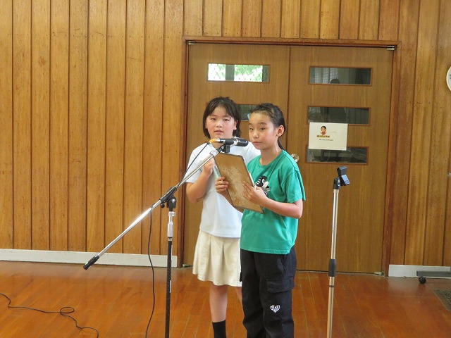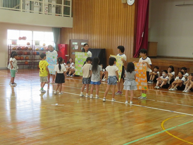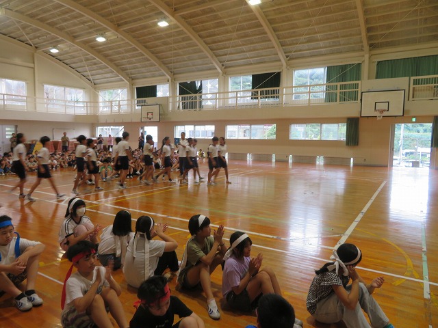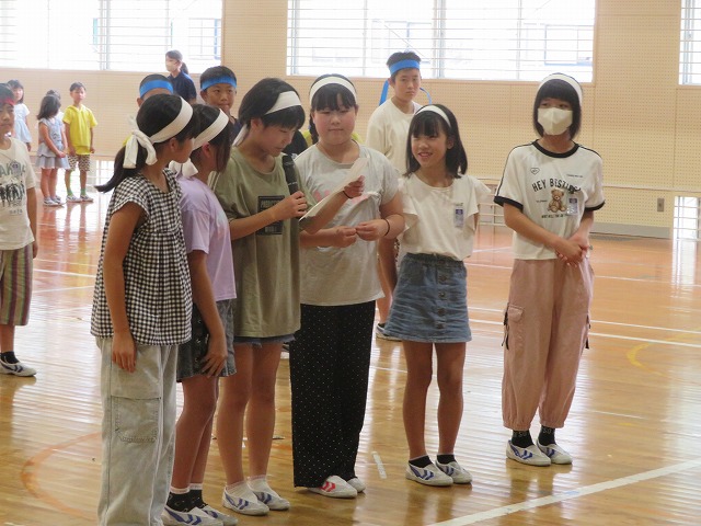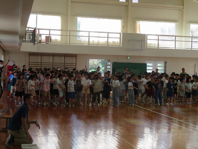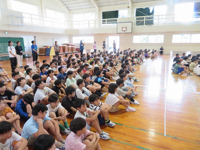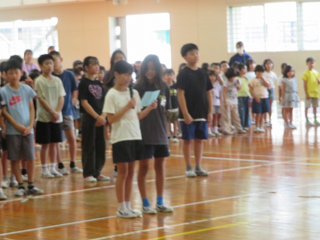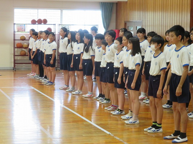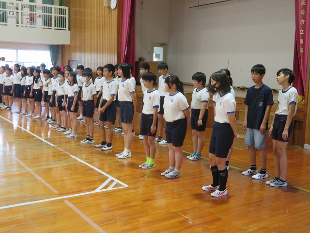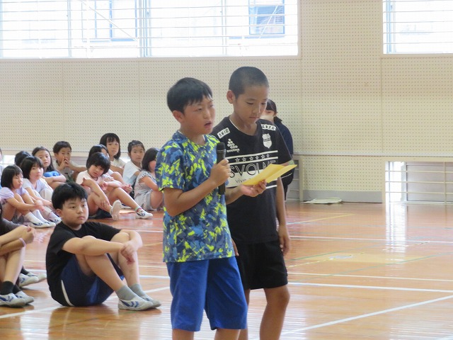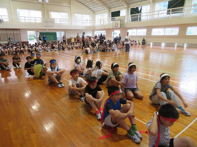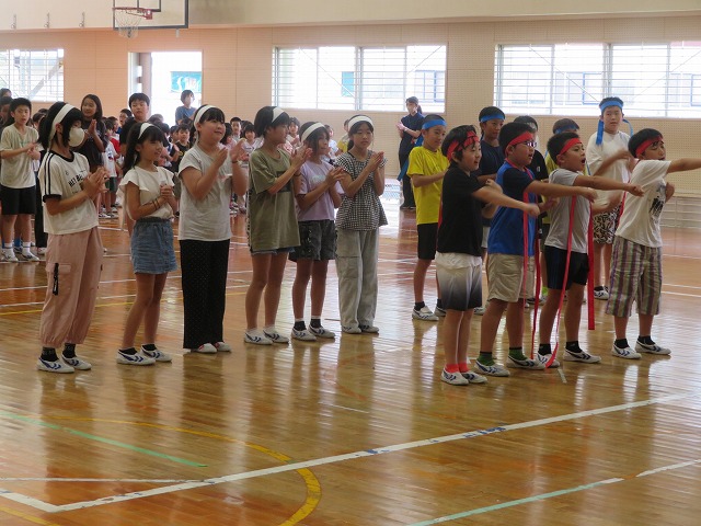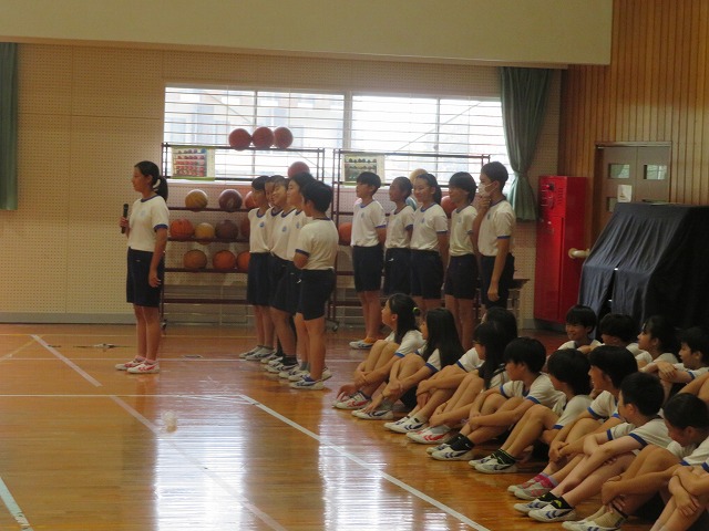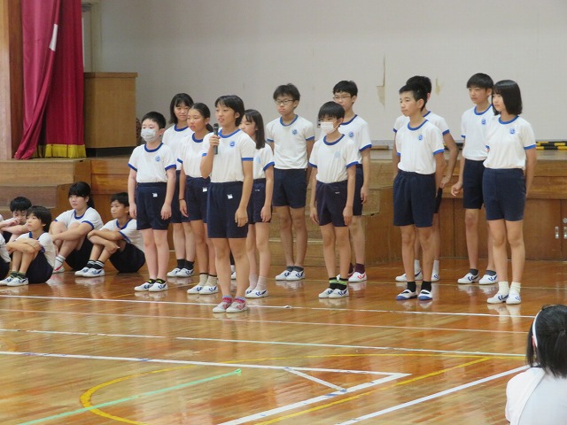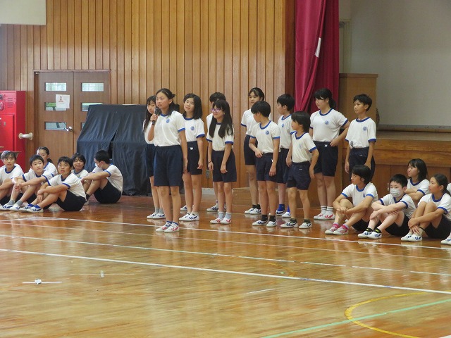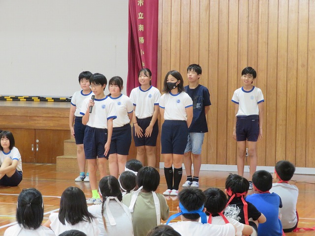 交流【学校生活】 小体会選手を励ます会10月8日 【更新日】2025年10月09日 15日(水)に6年生が出場する小体会があります。 小体会出場選手を励ます会が8日に行われました。5年生が中心になり、1~5年生までの大応援団を結成して全校応援をしました。 1年生から応援のメッセージプレゼントをもらったり、「ファイト一発!」「応援しています!!」と応援をしてもらったりしました。 6年生からは競技ごとに決意表明がありました。 今年から小体会は競技内容が見直され変更されます。本校は「ターゲットボッチャ」「プレルボール」「フットホッケー」「球入れ」に出場します。「フラッグフットボール」には参加しません。