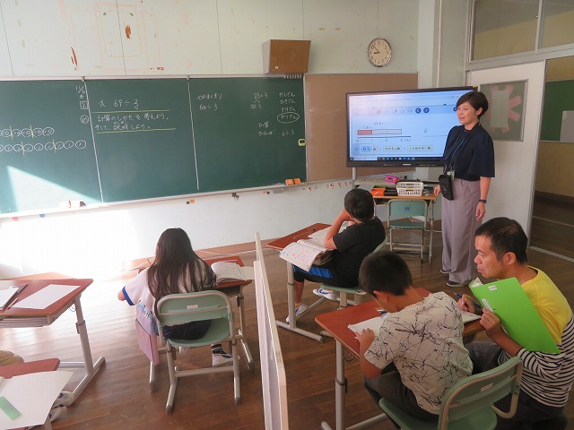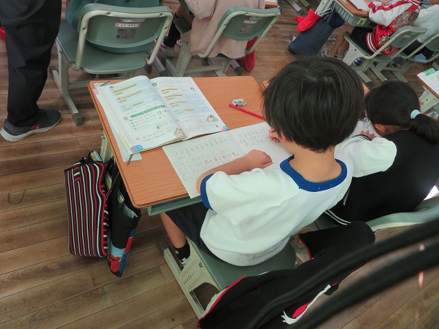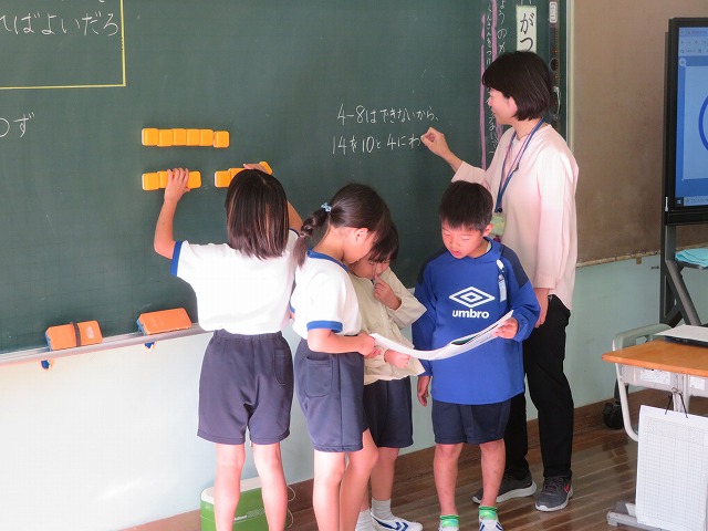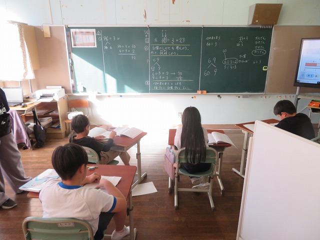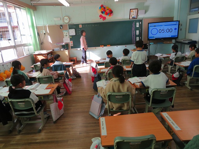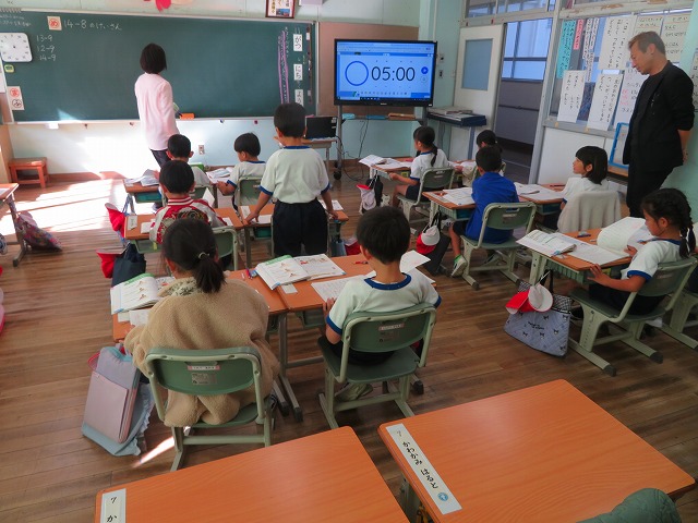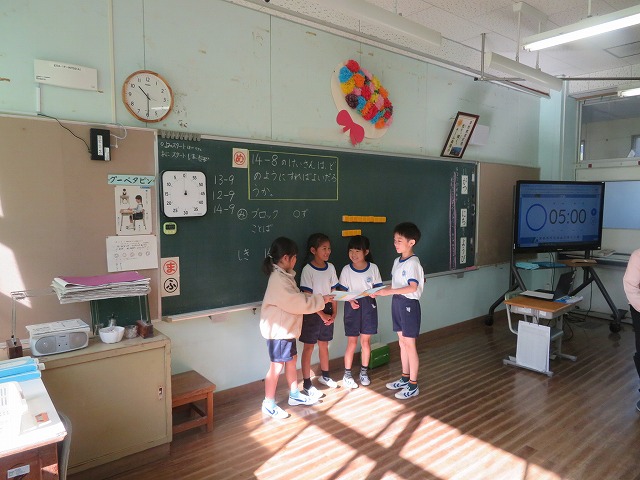 【】 研究授業 1年1組 こすもす学級 11月6日 【更新日】2025年11月07日 授業改善のために研究授業がすすめられています。授業の時は、子供が真剣に考える様子が分かります。今回は1年1組で算数科「ひきざん」、こすもす学級で「わり算の考え方」の授業公開がありました。