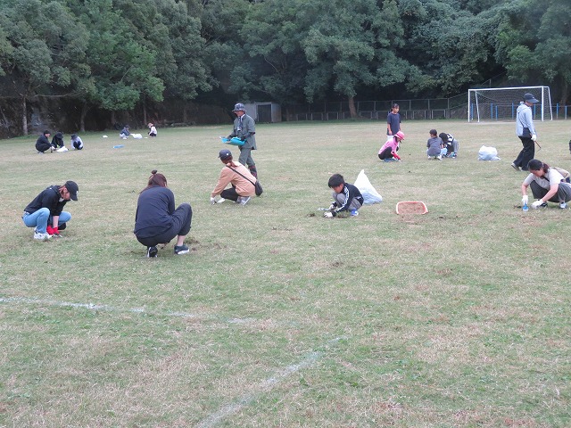 【】 芝刈り作業(育友会主催)10月25日 【更新日】2025年10月25日 10月25日(土)には育友会環境部主催の芝刈り作業がありました。 保護者様と子どもたち、先生たちが集まり、今回は雑草抜き、芝集めに取り組みました。南陽小の誇れる芝の運動場が保てるのは保護者様のお陰です。大変ありがたく思いました。