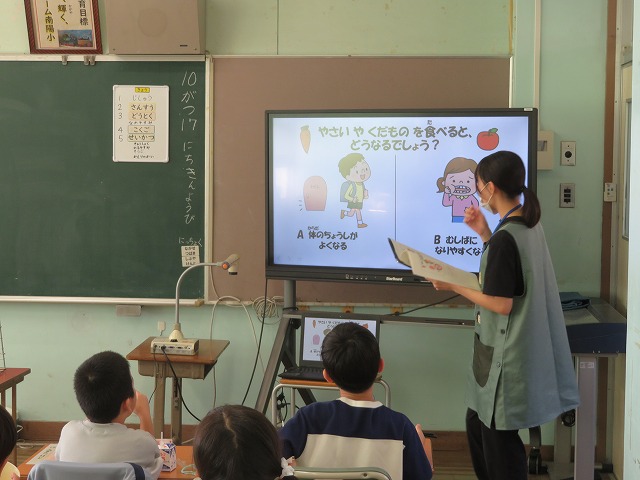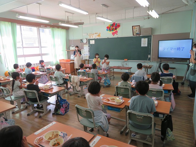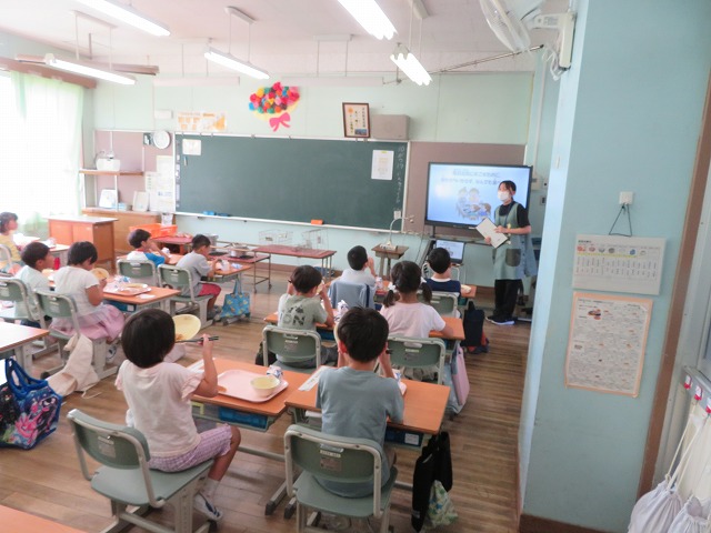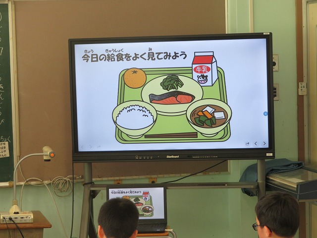 学習【学校生活】 食育指導 1の2 【更新日】2025年10月20日 食は体も心もつくります。本校は栄養士の先生が各クラスをまわり、食育の指導に取り組んでいます。たくさん食べて、体も心も大きく成長してほしいです。