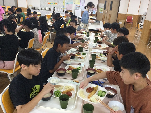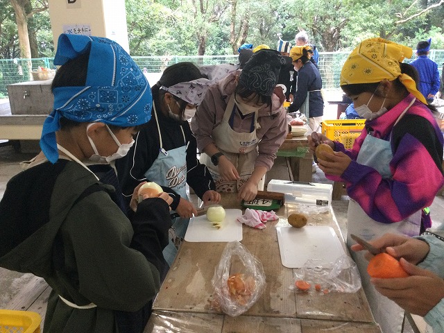 行事【学校生活】 5年生宿泊学習10月17日~19日 【更新日】2025年10月24日 5年生は宿泊学習のため日吉自然の家で2泊3日寝食を共にしました。 1日目にすり身づくり、他校との交流会をして、2日目にスコアオリエンテーリング、イニシアティヴゲーム、竹はし作り、シャッフルボードを、3日目に野外炊飯(カレー作り)をしました。 返事や挨拶をはじめ布団のたたみ方、皿や鍋の洗い方などしっかりと指導を受けました。 ①自然を知り、自然に親しむこと、②協力することの大切さを知り互いを高め合うこと、③集団行動のルールを守り、質を高めることができました。これからの学校生活、家庭生活、社会生活に生かしてほしいです。
