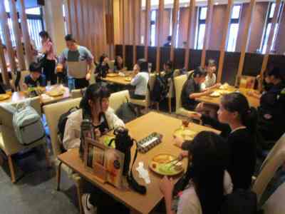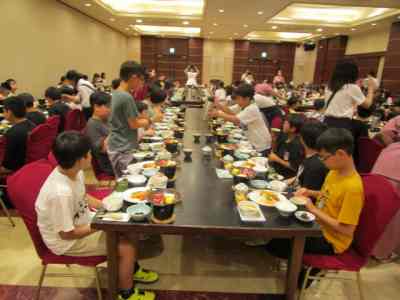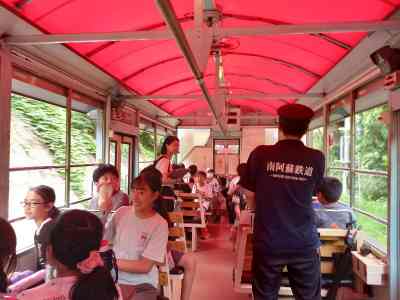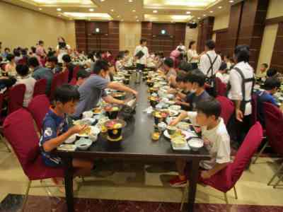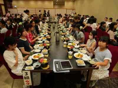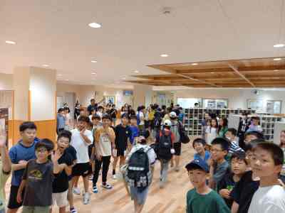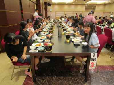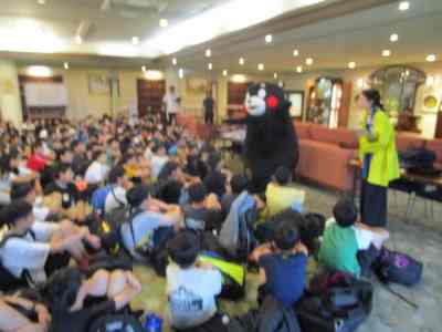 あいにくの雨の中での出発となった修学旅行。5年生に見送られ、バスへと向かいました。バスで高速道路を走行中に、熊本に滞在している添乗員さんから「熊本城内に落雷があり、電気系統のトラブル発生。このままでは熊本城の見学は難しい…。」との連絡がありました。子どもたちの安全を第一に考え、急遽「熊本城ミュージアムわくわく座」の見学に変更しました。子どもたちは、この変更にも臨機応変に対応し、学びを深めることができました。トロッコ列車に乗るころには天気も回復し、景色を楽しんだり、トンネルでドキドキしたりしながら楽しむことができました。ホテルに到着すると、サプライズでくまモンが登場!!大喜びの子どもたちでしたが、くまモンが去ると、さっと気持ちを切り替え、話をいつものように「目と耳と心で」聞くことができていて素晴らしいと思いました。