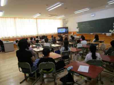 最後に、県警のスクールサポーターの方の話をリモートで聴いて、更に意識を高めました。真剣な避難の様子を今回も褒められました。