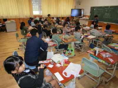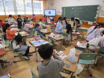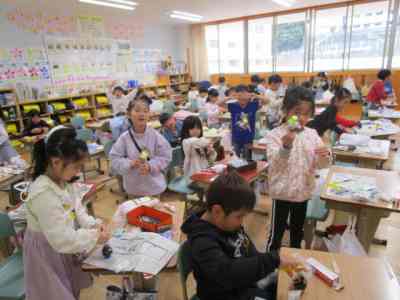 学校の様子【学校生活】 1年生生活科 【更新日】2025年12月01日 1年生教室を覗くと、松ぼっくりを使って制作活動中です。色とりどりの飾りができていきます。完成した作品を見せてもらうと「クリスマスツリー」でした。 12月の授業参観では、アサガオのつるでクリスマスリースをおうちの人と作る予定の1年生。クリスマスがますます楽しみになりますね。