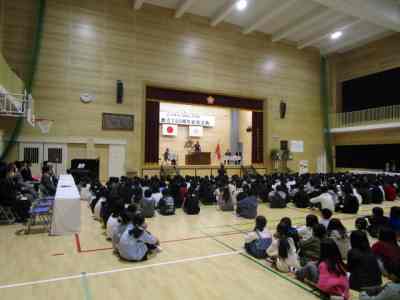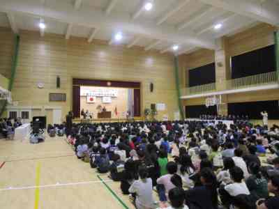 第二部では、小音会に出場した5年2組と2年3組が演奏で花を添え、最後に「ありがとうの花」を全校合唱して、いい気持ちで式典を終えることができました。