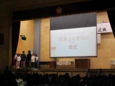 実行委員長挨拶、校長式辞、副市長様と市議会議長様にご祝辞をいただいた後、運営委員会の子どもたちが、西浦上小学校誕生からの152年の歴史について発表するとともに、伝統というバトンを受け継ぎ、新たな伝統を新校舎でリボーンすることを誓いました。