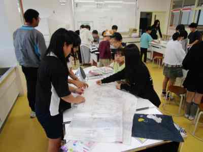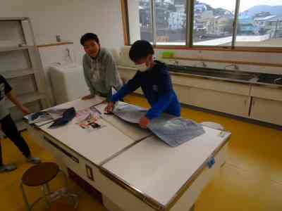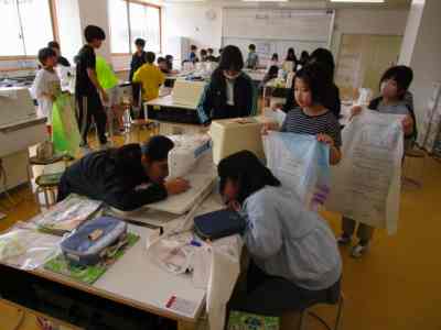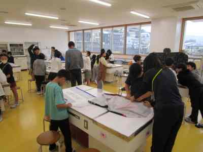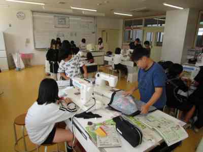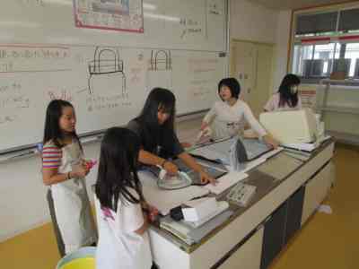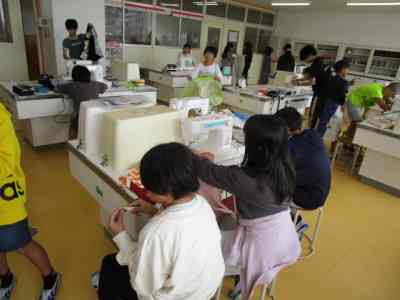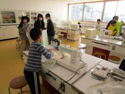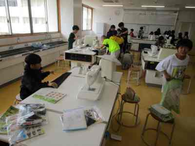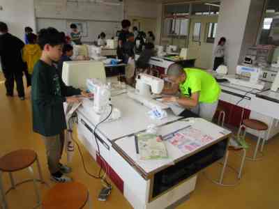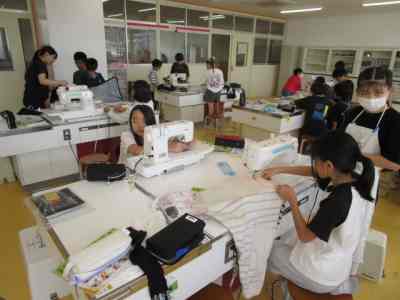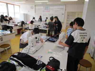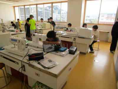 学校の様子【学校生活】 5年家庭科 (ミシン) 【更新日】2025年11月06日 5年生がミシンを使ってエプロンづくりにチャレンジしています。型紙に沿って裁断し、縫い代を考えてアイロンで折り目をつけ、紐を通す穴を塞がないように…。 仲間と協力したり、相談したり、先生に質問したり…。うまくできると良いですね。