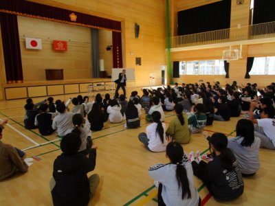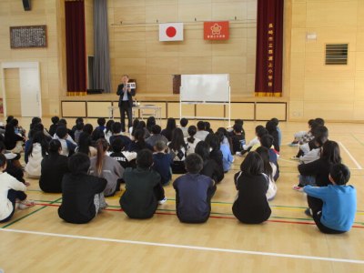 学校の様子【学校生活】 6年薬物乱用防止教室(11/28) 【更新日】2025年12月08日 6年生は、体育科の保健領域の学習で、飲酒や喫煙、薬物の健康被害について学習します。今日は、薬剤師の先生をゲストティーチャーとして「薬物乱用防止教室」を行いました。 講師は、レクレーションでもお馴染みの「トッチー先生」です。時折ユーモアを交えながらの講話に子どもたちは釘付けに……。また、日々の心の健康を維持する秘策も教えていただきました。プレゼンテーションを使わない講話は、子どもたちの心にしみたと思います。