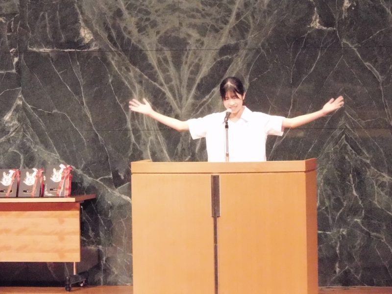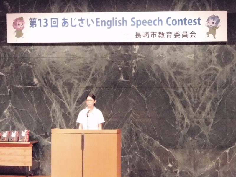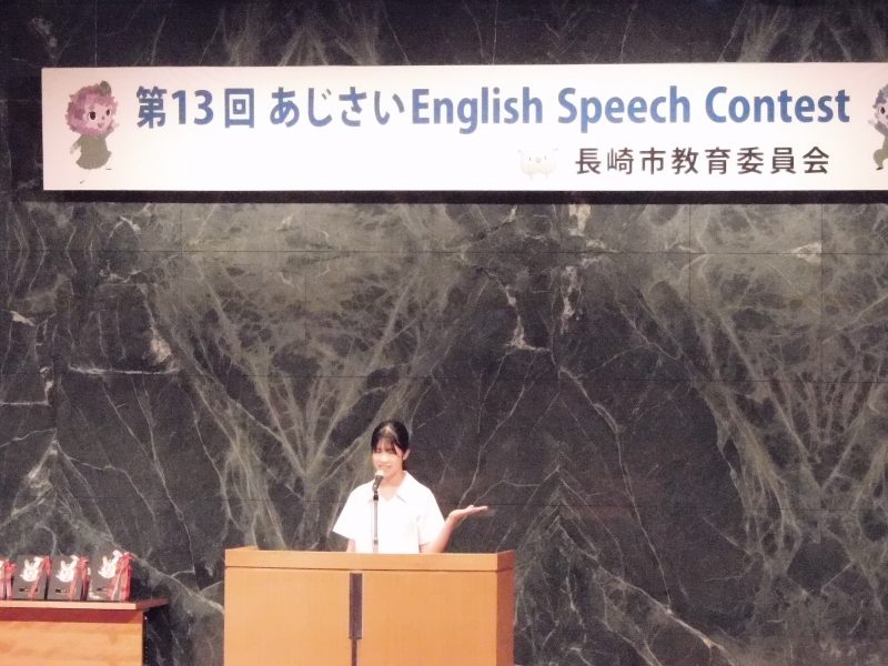 学校行事【学校生活】 あじさいイングリッシュスピーチコンテスト 【更新日】2025年10月20日 10月18日(土) 長崎原爆資料館ホールで「あじさいEnglish Speech Contest」が行われました。 本校より、2名が参加しました。ALTの先生方や多くの観客に向けて、英語で自分の考えを述べました。2名とも落ち着いた態度で自分の考えを流暢な英語で伝えることができました。 これまで指導していただいた英語科のY先生、ALTのY先生、ありがとうございました。 発表を行った2名は、自身の将来の仕事についても、話していました。自分の夢に向かって努力を続けてください! 奨励賞 3年 MTさん 「長崎の離島に医療を」 入 選 3年 MMさん 「長崎の夜景を守る」