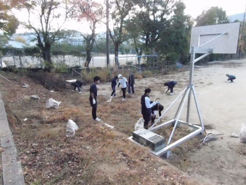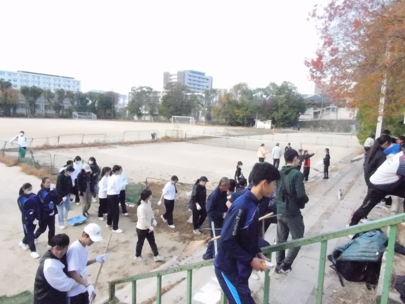 学校行事【学校生活】 クリーンアップ大作戦 【更新日】2025年11月30日 本日は、育友会主催でクリーンアップ大作戦を行いました。 生徒の皆さんをはじめ、保護者の皆さん、部活動コーチ、先生方で、グランド周辺を中心に草刈りを行い、スッキリとなりました。 大作戦の後は、育友会の方々による豚汁とおにぎりをいただきました。身も心も温まりました! 早朝より、本当にありがとうございました。