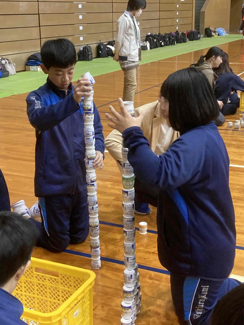 学校行事【学校生活】 体験学習会 【更新日】2024年11月22日 県立総合体育館で体験学習会があり、本校より6名が参加しました。 他校の生徒の皆さんとレクを楽しみました。 ヨーグルトカップを個人で20段近く積み上げることができました。その後、みんなで協力して作品を作りました。 また、ドッチビーとして、他校の皆さんとチームをつくり、フリスビーをボール代わりとしてドッジボールのように楽しみました。 最後は、フリスビーでストラックアウトにも挑戦しました。みんなで協力しながら楽しむことができました。