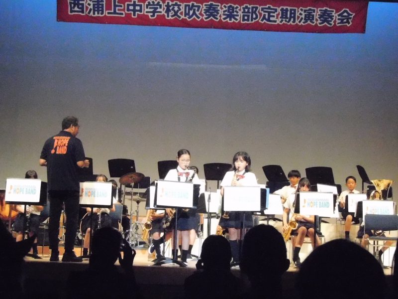 途中、ゲストステージとして西浦上小学校ホープバンドの演奏もあり、6年生2名を含むメンバーが表情豊かに生き生きと演奏しました。