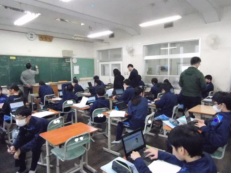 授業者のU先生は、長崎大学の大学院生でもあり、大学院での研究と本校の1年生担任としての二刀流です!