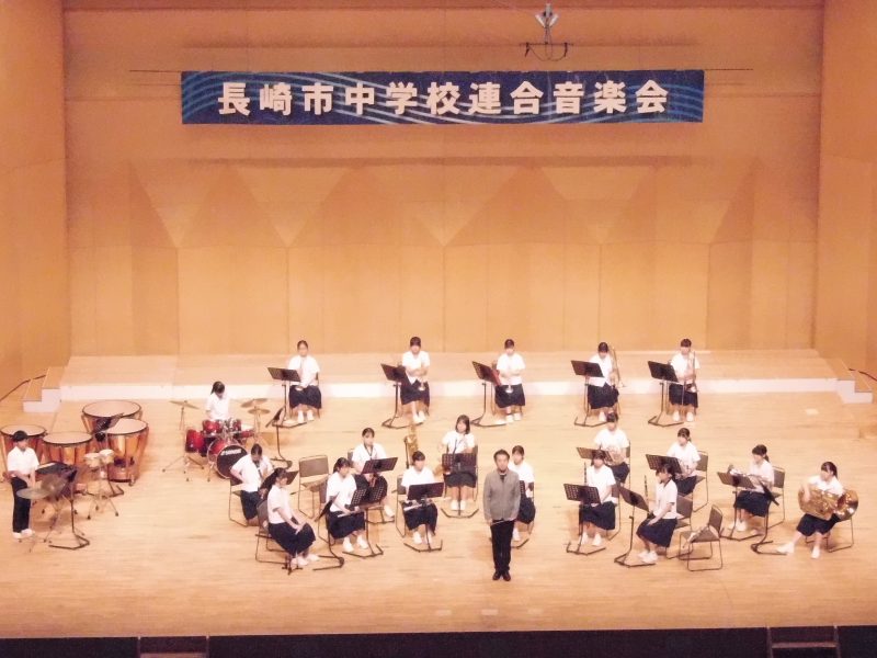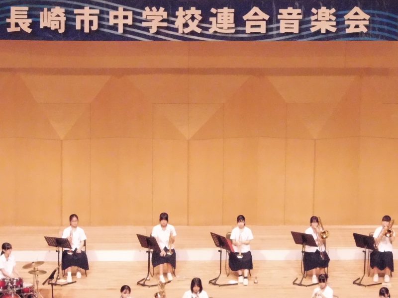 ブリックホールにて第75回 長崎市中学校 連合音楽会が開催されました。本校吹奏楽部は、本日の午前中に出演しました。
