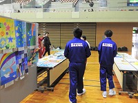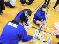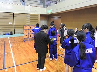 体験学習会 【更新日】2025年11月21日 11月21日(金)に県立総合体育館メインアリーナにて、体験学習会が開催されました。 本校からは1年と3年の4組・5組の生徒が参加しました。 ボッチャ、展示見学、ディスゲッター(的当て)、ヨーグルトカップ積みの4つのエリアに分かれて活動しました。 本校生徒は他校の生徒とも協力しながらレクリエーションを楽しみ、交流を深めました。
