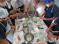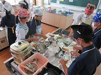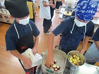 第1学年調理実習 【更新日】2025年10月16日 10月16日(木)に、1年2組・4組の家庭科の授業で調理実習を実施しました。1年1組・5組は10月7日(火)に行いました。 「鮭のホイル蒸し」「ふかし芋」がメニューでした。 具材をホイルに入れ、フライパンで蒸す調理と、サツマイモとジャガイモを程よい大きさに切り、蒸し器で蒸す調理を行いました。 蒸し加減が難しかったのですが、何度も確認しながら料理を完成させました。 今日の実習で学んだ蒸し料理をぜひ家庭でも実践してほしいと思います。
