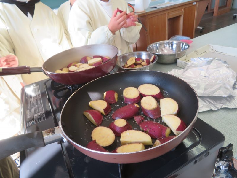 1年生【学校生活】 1/17(金) 収穫したいもをおいしく調理(1・2年生) 【更新日】2025年01月22日 2学期末に収穫したおいもを1,2年生みんなで調理して、おいしくいただきました。調理といっても、子どもたちは皿をあらったり、台を拭いたり、後かたずけをしたりという仕事の担当で、切ったり焼いたりするのは、担任の先生のお仕事でした。でも、子どもたちは、自分たちが植えて、収穫したお芋をとても美味しそう食べていました。たくさん収穫できたので、ほかの学年にもおすそ分けし、食べてもらいました。収穫する喜び、それを自分たちで調理し食べる楽しさ、そして、みんなが喜んでくれる嬉しさなど、いろいろな気持ちを感じることができた活動でした。