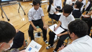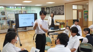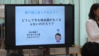 学校の様子【学校生活】 平和学習 【更新日】2025年11月04日 10/23(木)、今年度も長崎大学核兵器廃絶研究センター(RECNA)准教授 中村桂子先生に御来校いただき、「核兵器のない世界は実現できる?」の演題でとても分かりやすく講話をしていただきました。 80年前の原爆被害と現代の予想される核兵器被害を比較して、不安定な世界情勢の中で、いつ核兵器が使用されてもおかしくない状況であることを改めて知ることができました。本年度は、「なぜ核兵器を持つのか」と「どうしたら核兵器を持たなくなるのか」をグループに分かれて話し合い、解決策を発表し合いました。