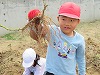 1年生の部屋【学校生活】 自然の恵みと感謝の心 【更新日】2025年11月06日 11月5日(水)、1年生は自然の恵みを肌で感じる芋掘りをしました。 畑の土づくりから収穫まで、ていねいにお世話をしてくださった事務の先生にお手伝いいただき、たくさんのサツマイモを収穫することができました。 土の中から大きく立派なサツマイモが顔を出すたびに、子供たちは育てる喜びを実感し、収穫の喜びに大興奮! この芋掘り体験を通して、子供たちは土や太陽の恵みに感謝するとともに、自分たちがいただく食べ物の命や、サポートしてくださった先生方への感謝の気持ちを学ぶことができました。