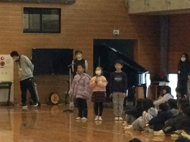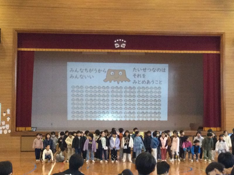 【】 人権集会 【更新日】2025年12月05日 12月3日に人権集会を行いました。 各学年の発表を行ったり、歌を歌ったりして友達の大切さを考えました。 また、長崎県教育委員会の先生を招き、お話をしてもらいました。 この日は大変寒かったのでしたが、心が温まる充実した時間となりました。