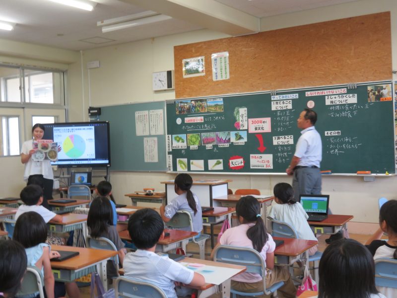 事前に行われた授業では、長崎市の伝統野菜を知り、これからの農業体験学習に向けて、取り組んでいきたいことを考え、班で話し合いました。また、授業の中で、子どもたちは伝統野菜を守るためによさを広めていく「伝統野菜守り隊」にも進んで入りました。