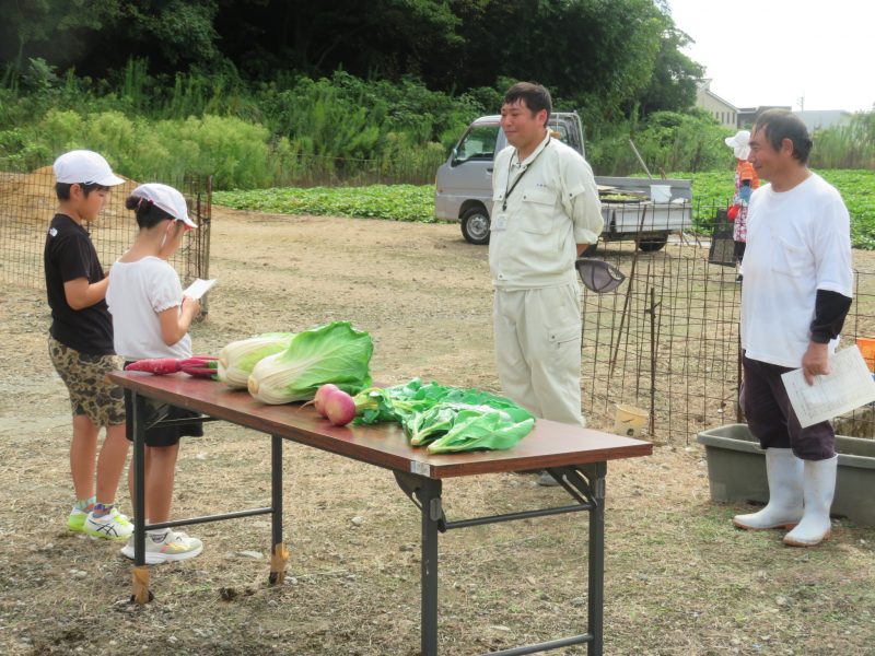 24日の見学では、農業センターの方が畑の整備や苗の準備をしてくださって、唐人菜の苗を植えたり、紅大根の種まきをしたり、畑の草取りをしたりと、熱い中頑張って活動していました。