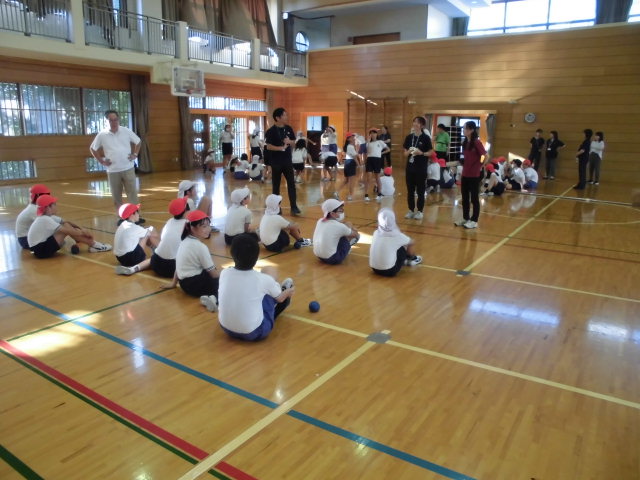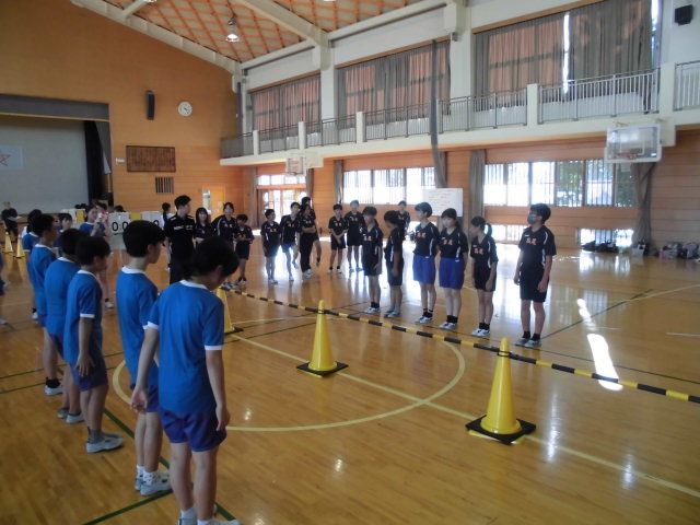 小体会の練習試合を行いました。山里小・坂本小に協力をいただきました。本校ではプレルボールをしました。どの学校もチームワーク、マナー良く取り組んでおり、さすが6年生でした。 -