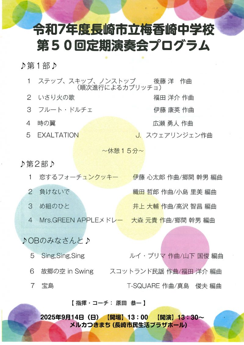 9月14日(日) メルカつきまち(長崎市民生活プラザホール)で吹奏楽部の第50回定期演奏会が行われました。