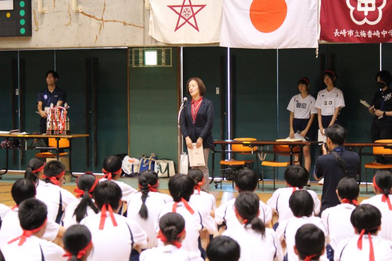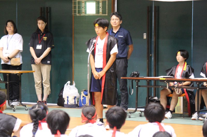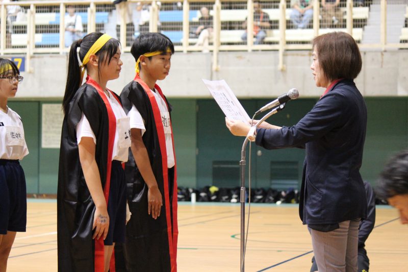実行委員を中心に運営された今回、子どもたちの活躍が目を引きました。係活動を一生懸命行う姿や学年を問わず声がかれるほど懸命に応援する姿が見られました。特に、今回は体育館開催だったこともあり、子どもたちの声が会場によく響き、観覧に来られた保護者のみなさんにも生徒たちの「負けたくない」という闘志が伝わったのではないでしょうか。