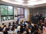 R7年度【学校生活】 図書ボランティアによるペープサート 【更新日】2025年11月12日 お世話になっている学校図書ボランティア「ダンボ」の方々に来校いただき、ペープサートによる読み語りをしていただきました。 この日の対象は4年生、物語は「ジャックと豆の木」です。 定番中の定番のお話ですが、みんな食い入るように見て、話の世界に入っていっていました。 こうした機会が定期的にあること、本当にありがたい限りです。