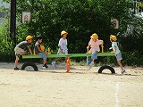 R7年度【学校生活】 昼休みの風景 【更新日】2025年10月06日 10月に入り、ずいぶんと残暑も和らいできました。 昼休みには、外で元気に遊ぶ子どもたちの姿が見られます。 新設されたシーソーには1年生が集まっています。 みんな笑顔です。 平和で幸せな風景がここにはあります。
