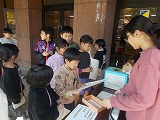 R7年度【学校生活】 環境クイズラリー 【更新日】2025年12月02日 環境委員会が計画をし、環境クイズラリーを開催しました。 校舎内の5か所に、環境にかかわるクイズが掲示されています。 それに答えて受付に提出し、見事に正解だと手作りの景品がもらえます。 昼休みの玄関前は大賑わい。全校を巻き込んだ環境委員会のすてきな取組でした。
