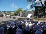 R7年度【学校生活】 3年平和公園での学び 【更新日】2025年10月02日 3年生の総合的な学習で平和公園に行きました。 「平和祈念像」「平和の泉」「平和の鐘」を中心に、記念館資料室の案内人の方々にお話をいただきながら現地で学びました。 この日も平和公園は、観光客や修学旅行生であふれていました。 こうした全国的にも有名な平和関連施設が校区内にあることは本当に貴重なことです。 身近にあるよさを生かし、学びを深めていければと思います。